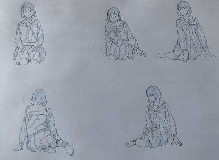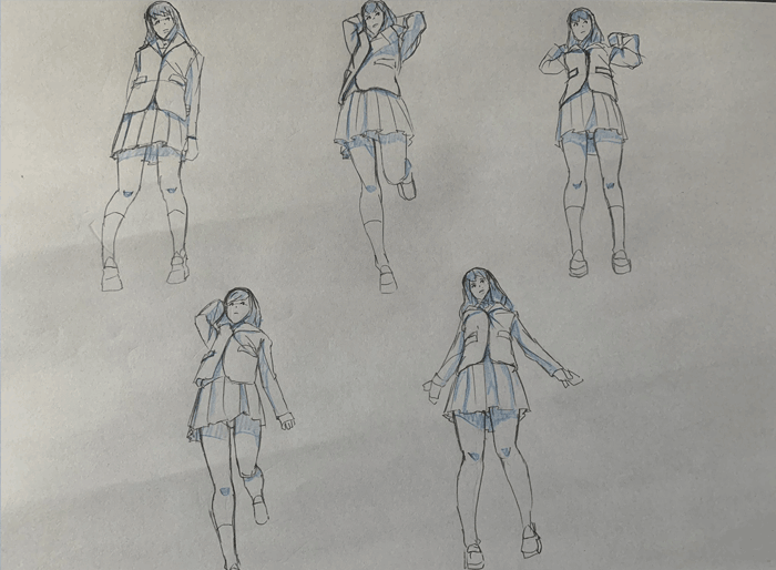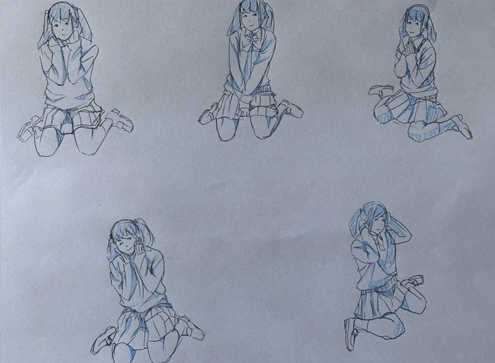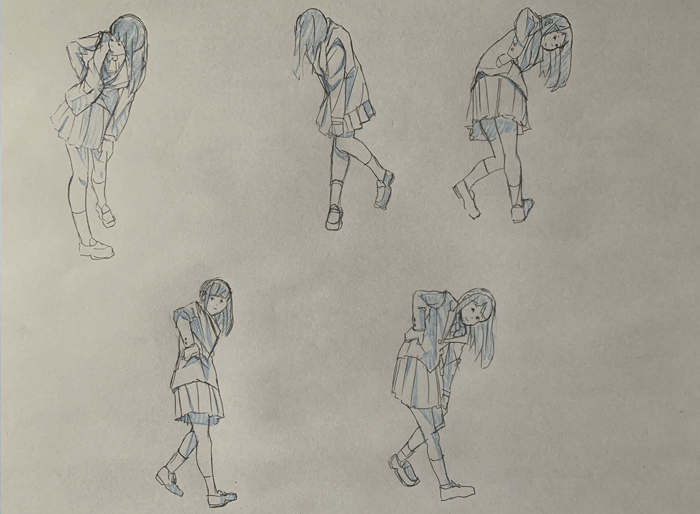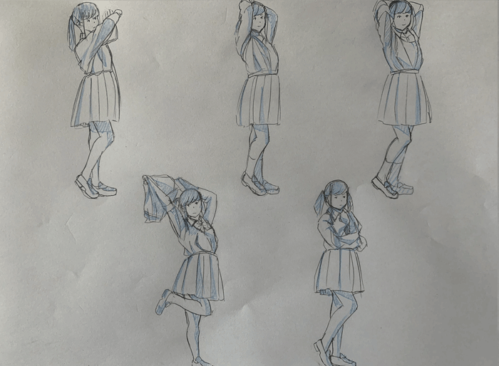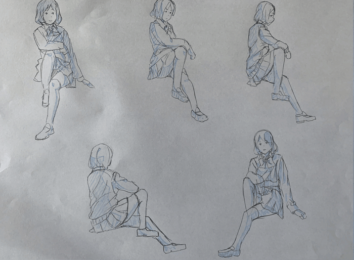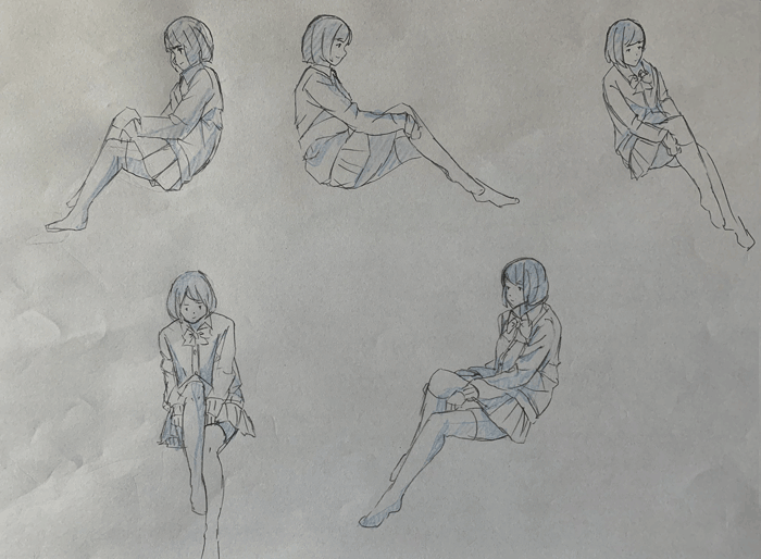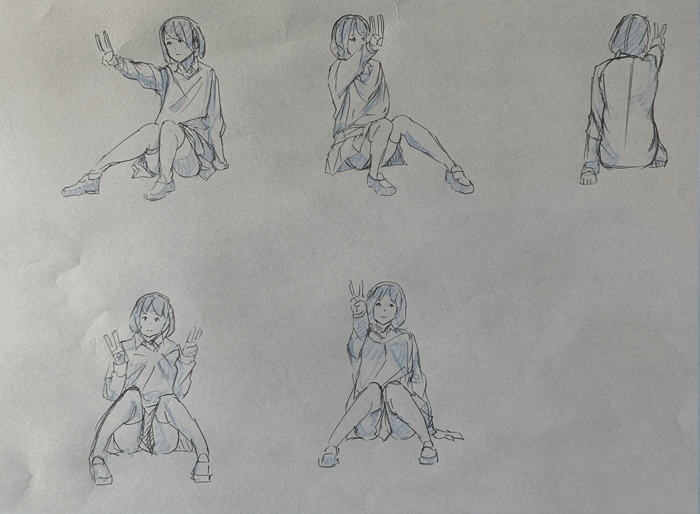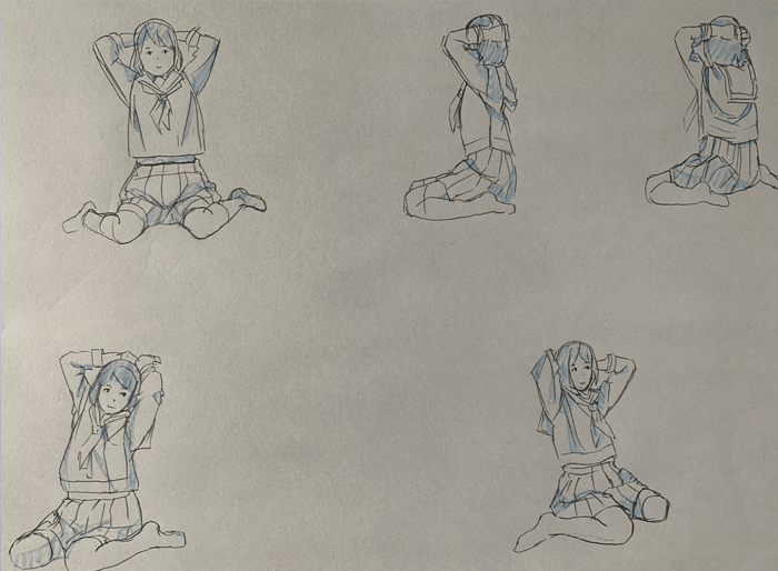 練習「イラストレーターが考えた女子高生ポーズ集」の簡単クロッキーをやっていきます。