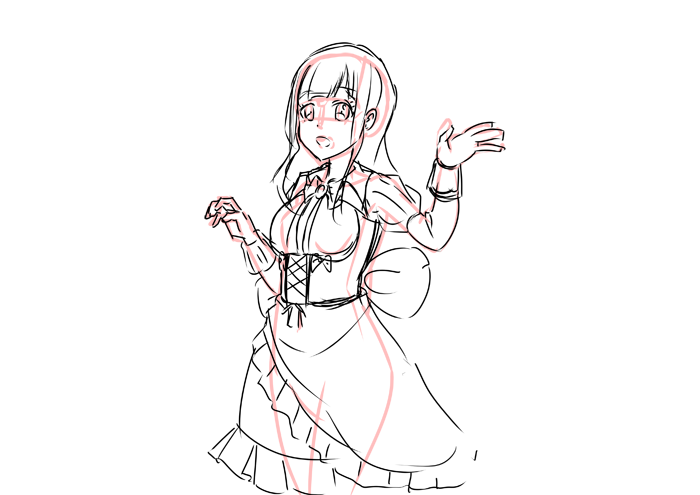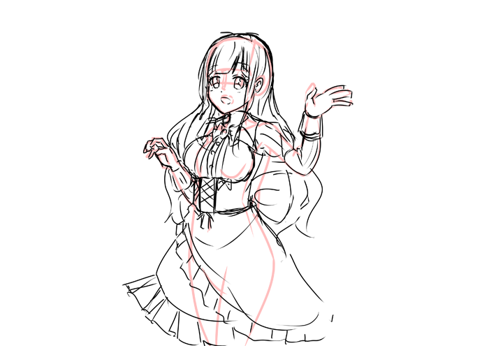 今回も素体とポーズ決めをアナログで描きました。