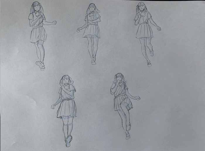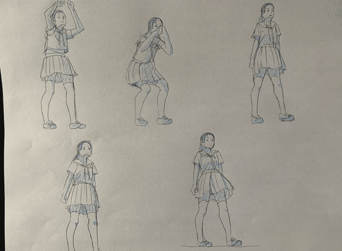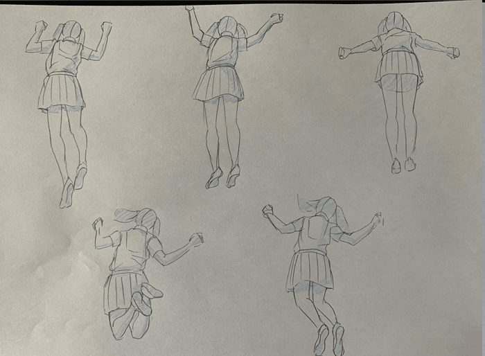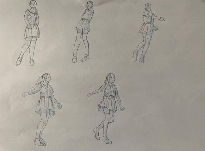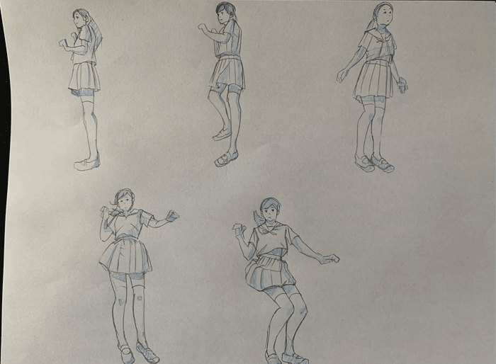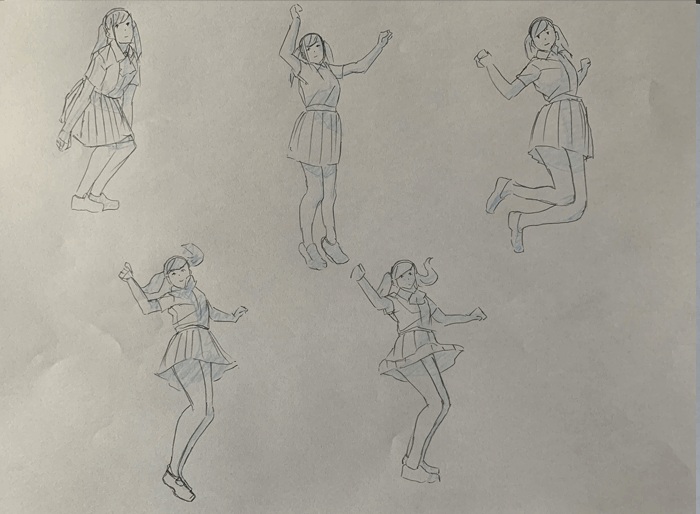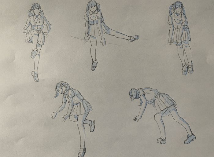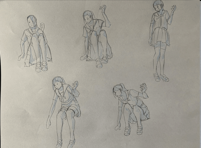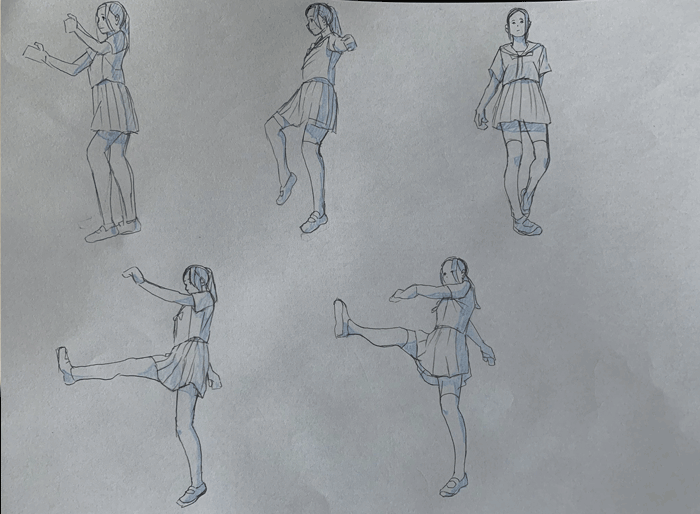 練習「特撮アクションポーズ05 あおりモーション [女子高生編]」を参考にクロッキーの練習をしています。