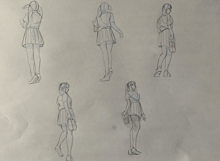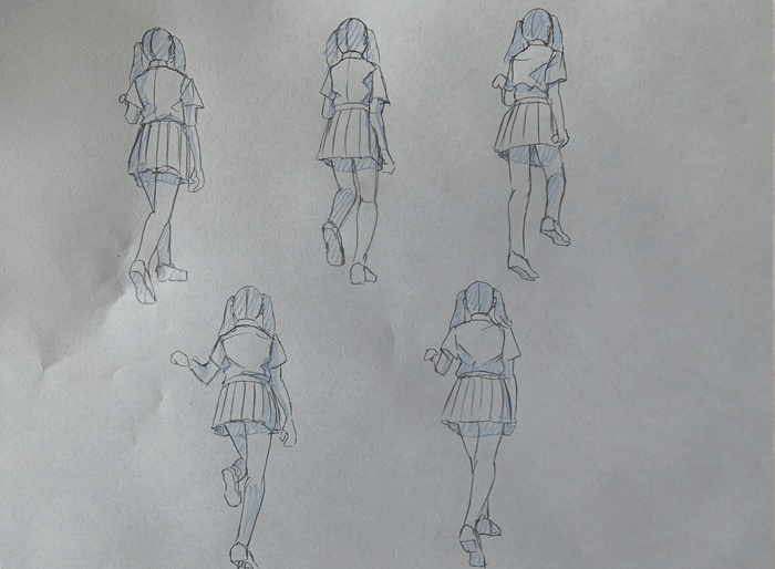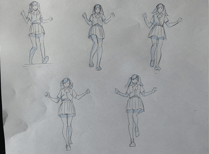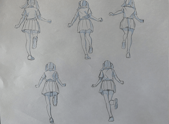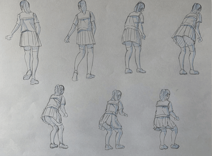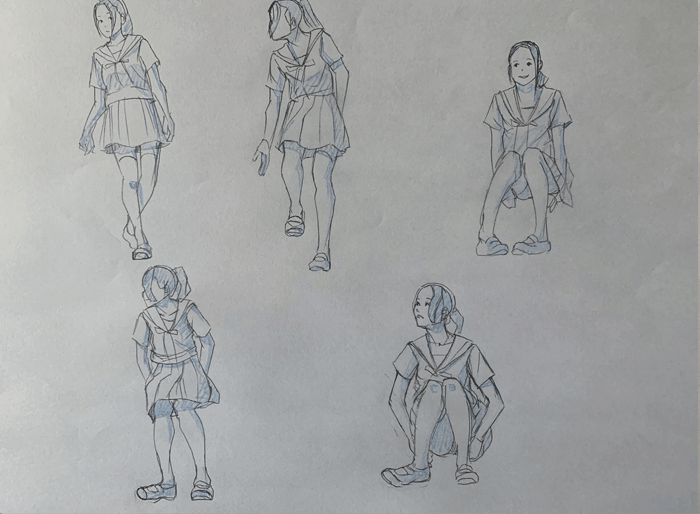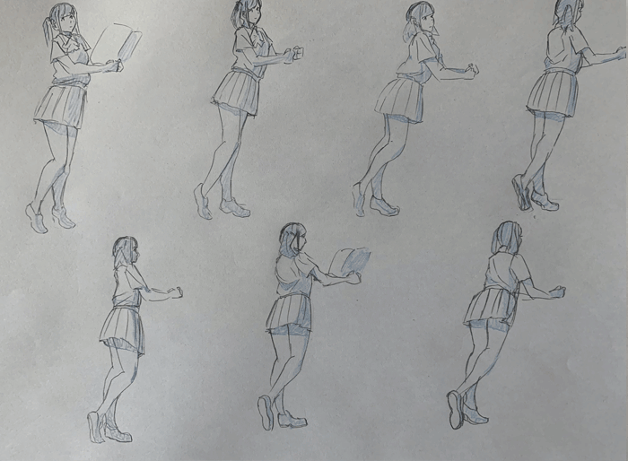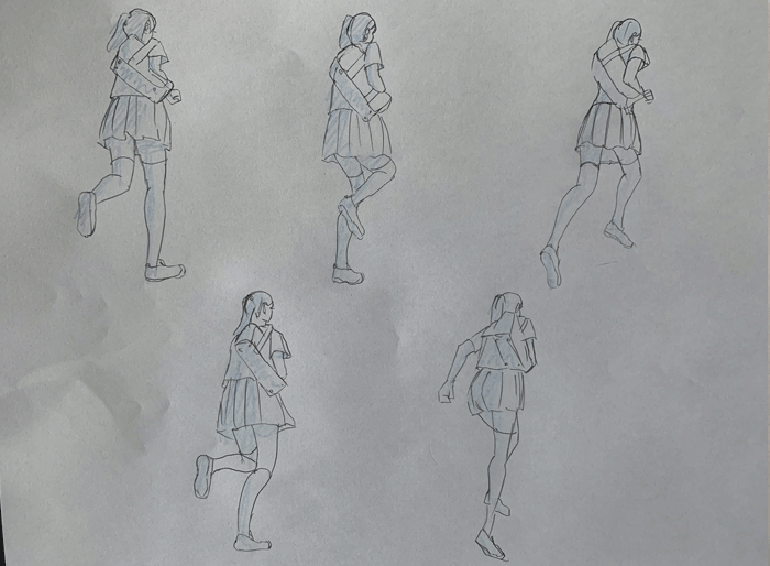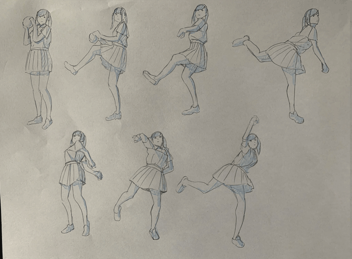 練習「特撮アクションポーズ05 あおりモーション [女子高生編]」を参考にクロッキーの練習をしています。