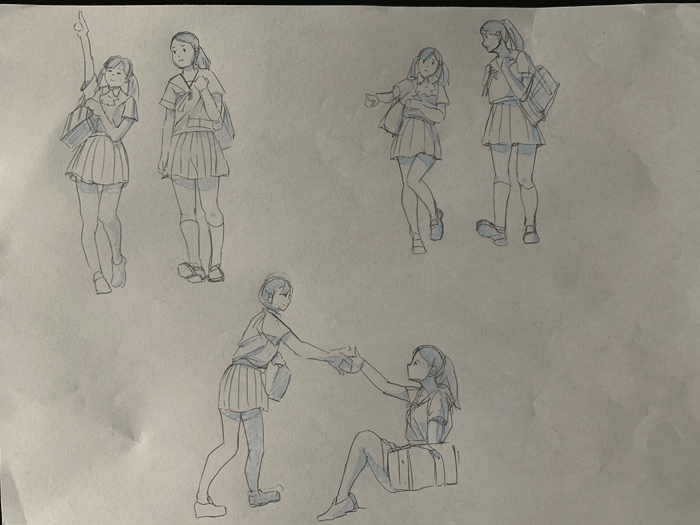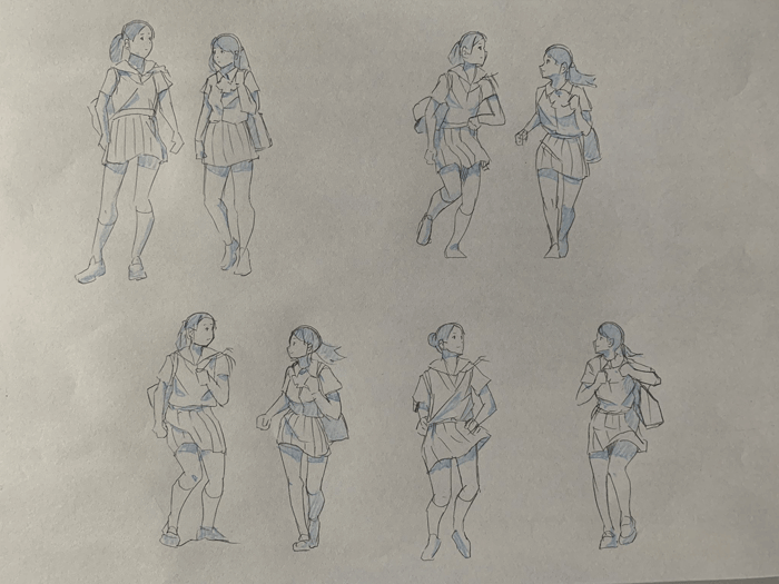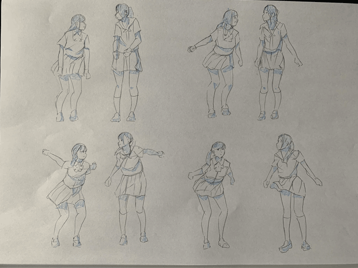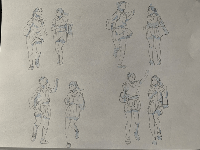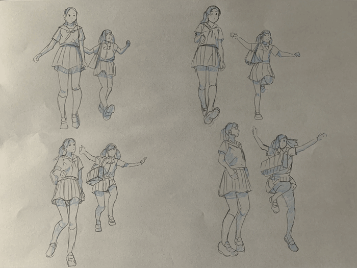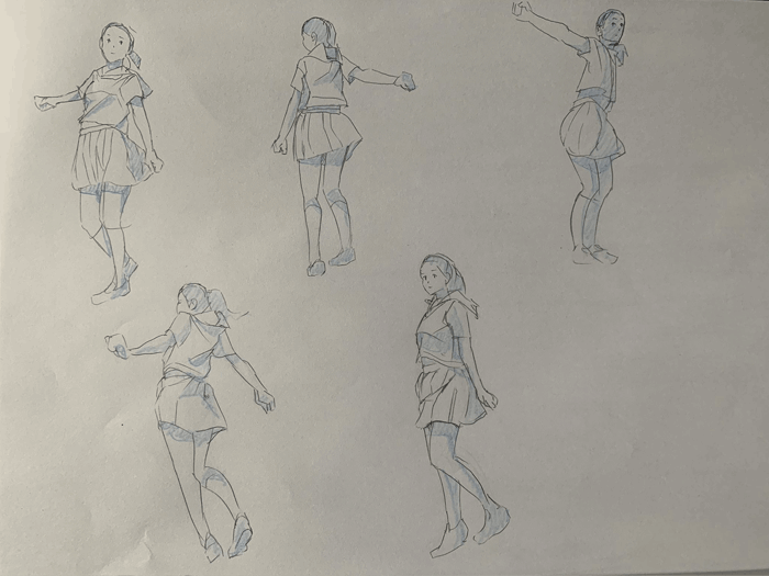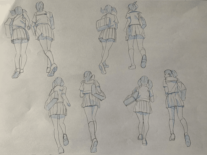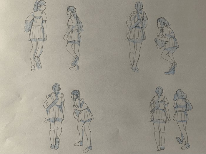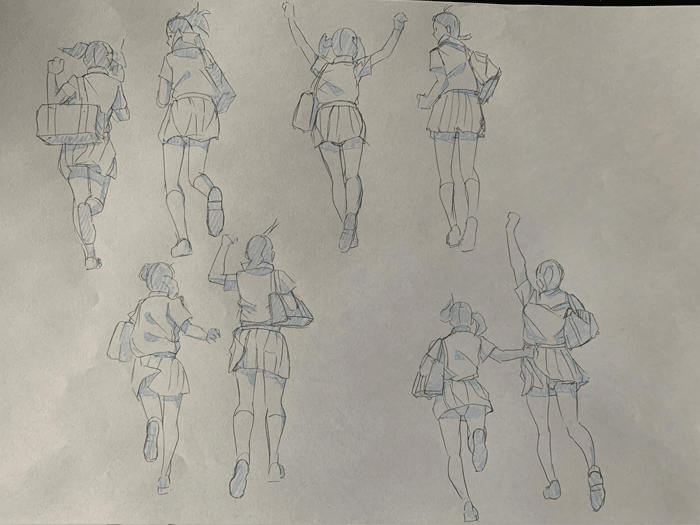 練習「特撮アクションポーズ05 あおりモーション [女子高生編]」を参考にクロッキーの練習をしています。