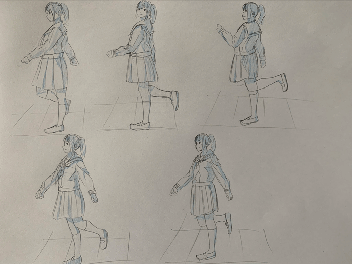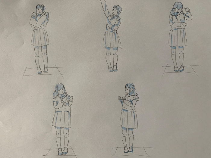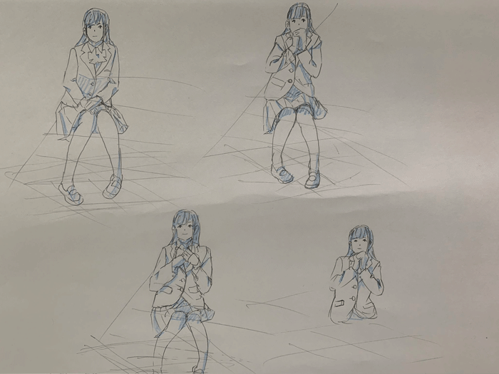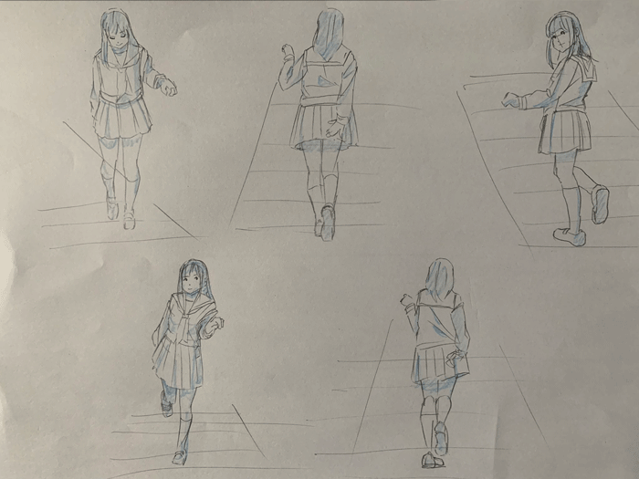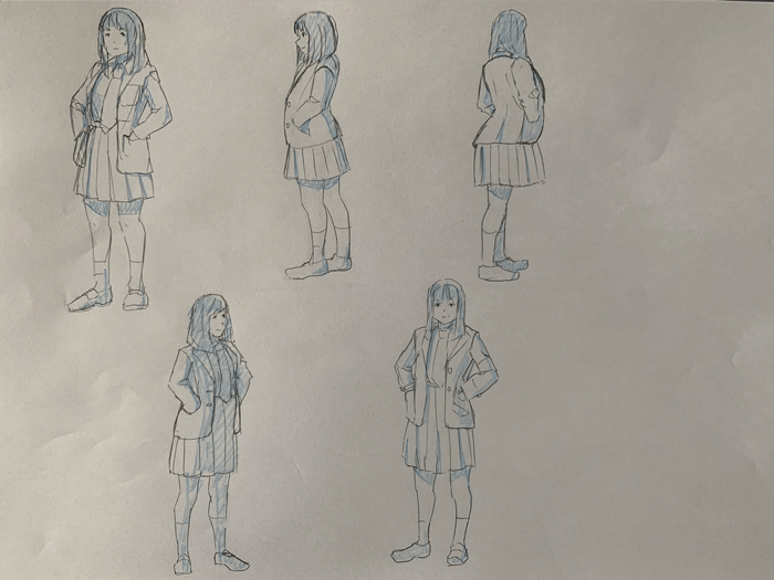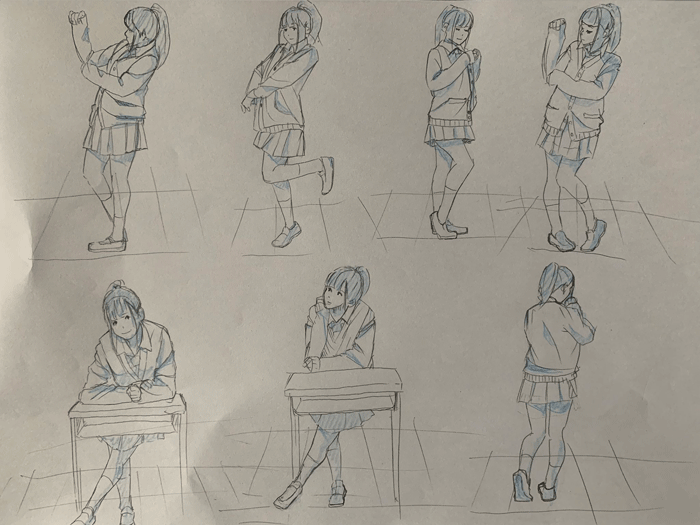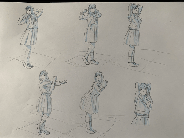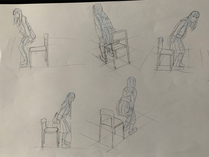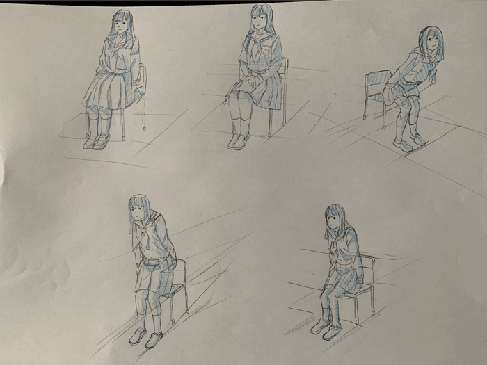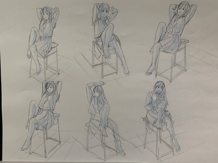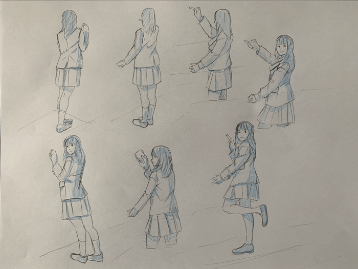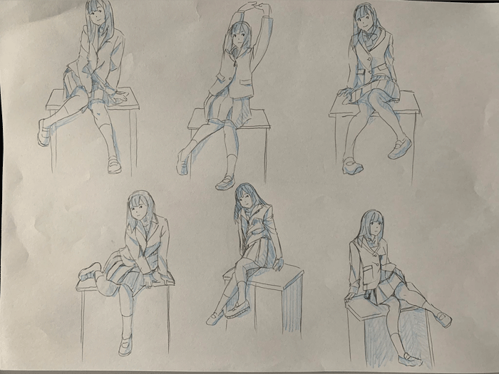 練習「女子高生ポーズ集」を参考にクロッキーの練習をしています。