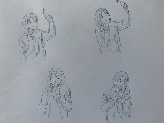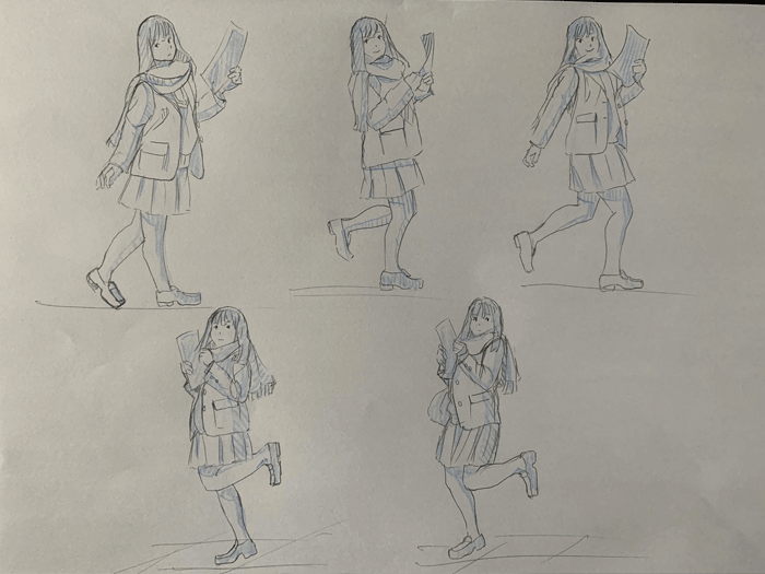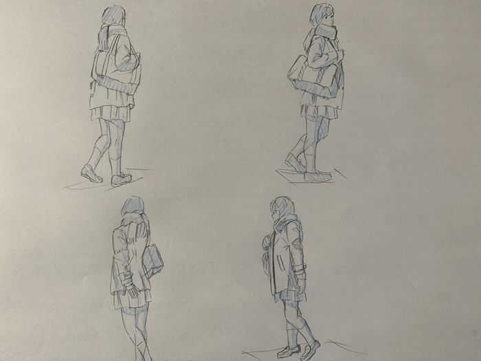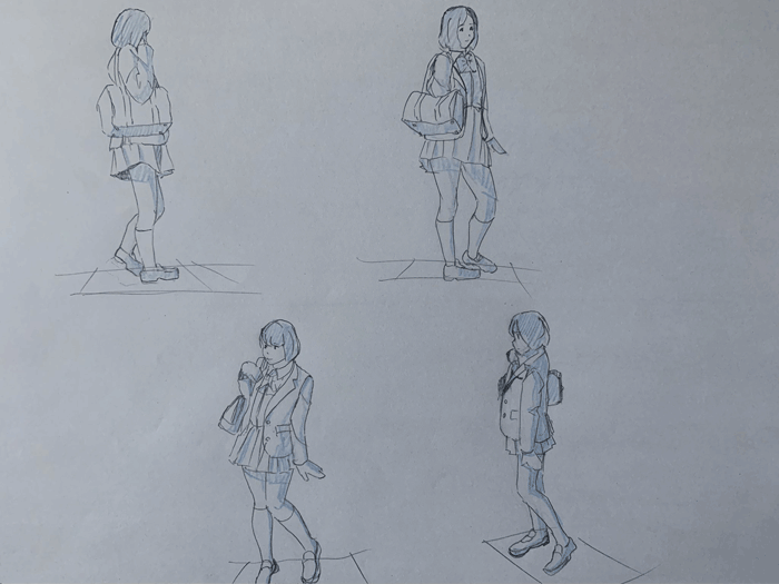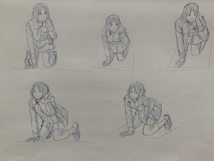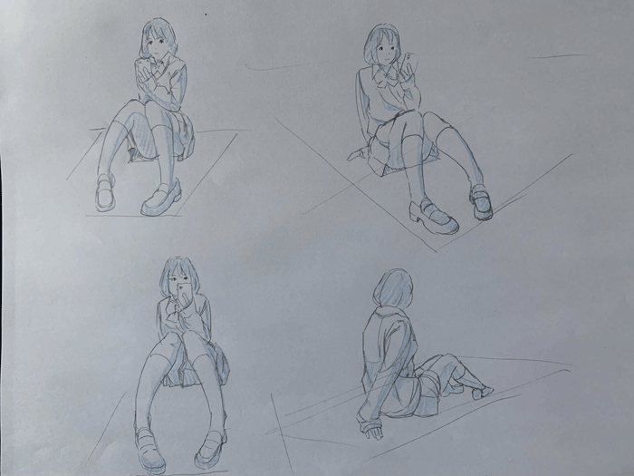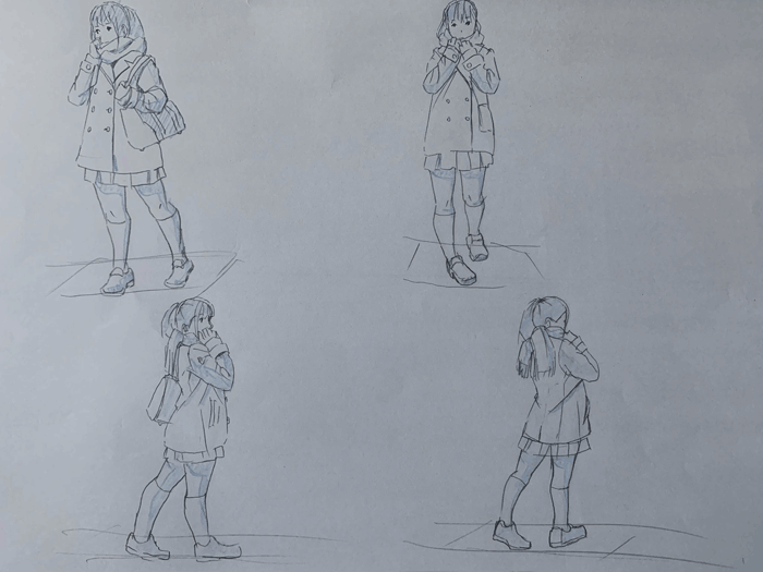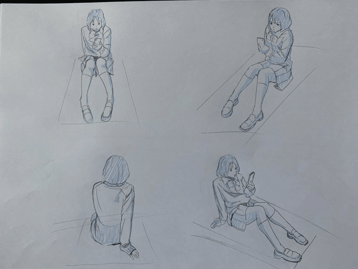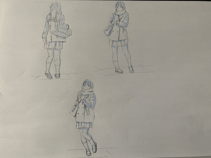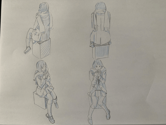 練習「女子高生ポーズ集」を参考にクロッキーの練習をしています。