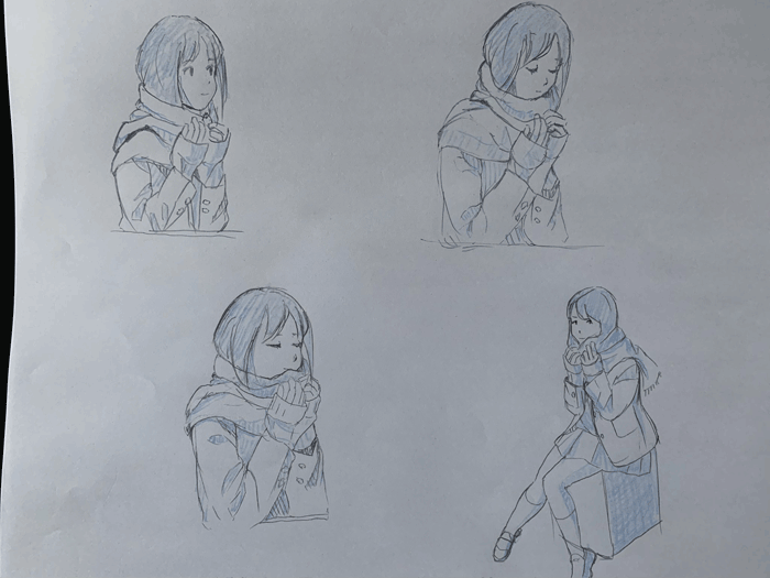 マフラーの厚みをもう少しうまく描きたい。