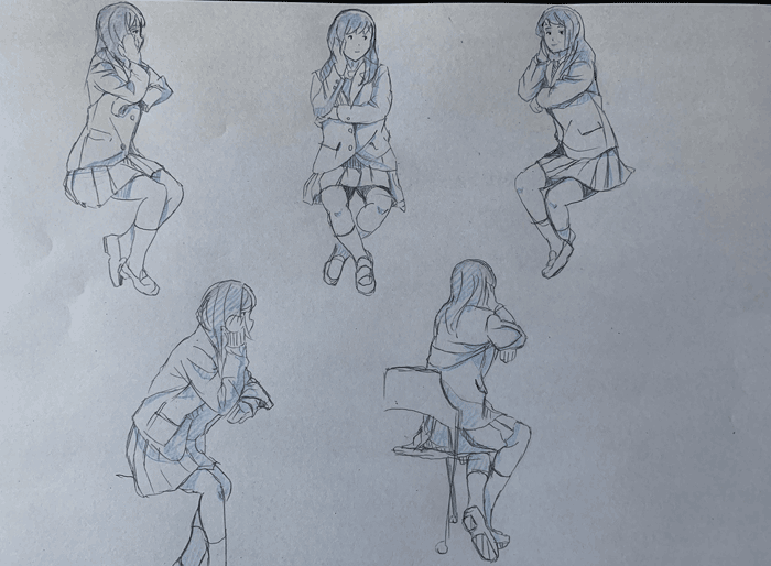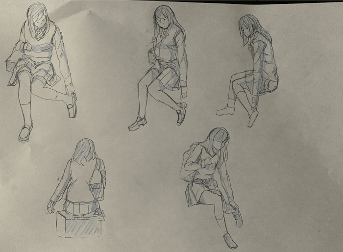 練習「イラストレーターが考えた女子高生ポーズ集」の簡単クロッキーをやっていきます。