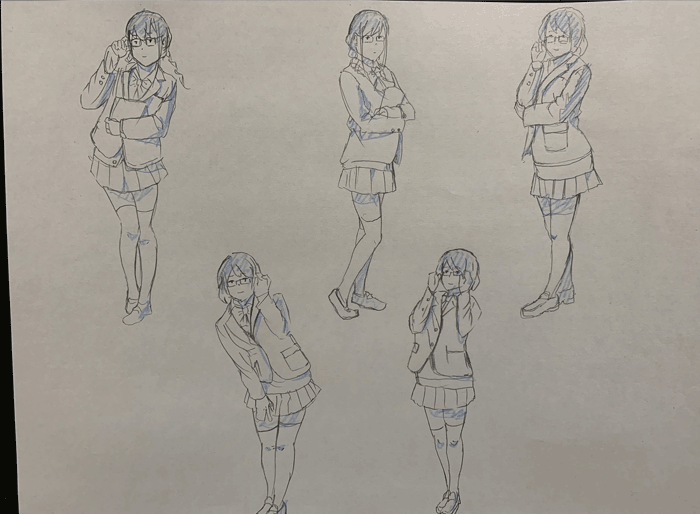 最近うまく描けていなかったので、描きやすい「立ちポーズ」を選びました。全体のサイズは以前も言ったように「頭を大きめ」にとっているので足の長さを若干調整しています。