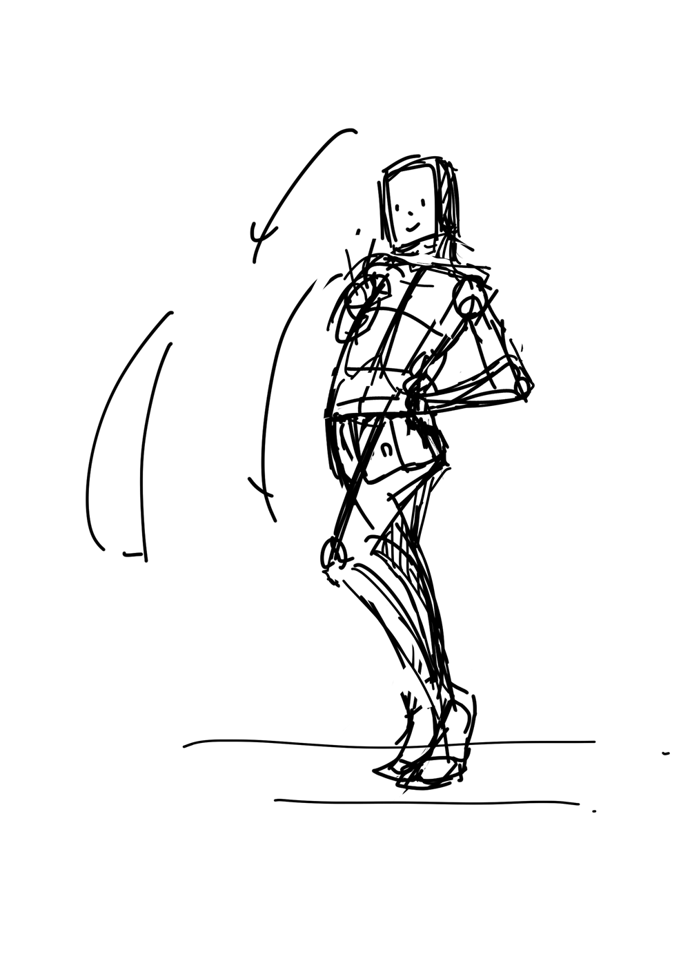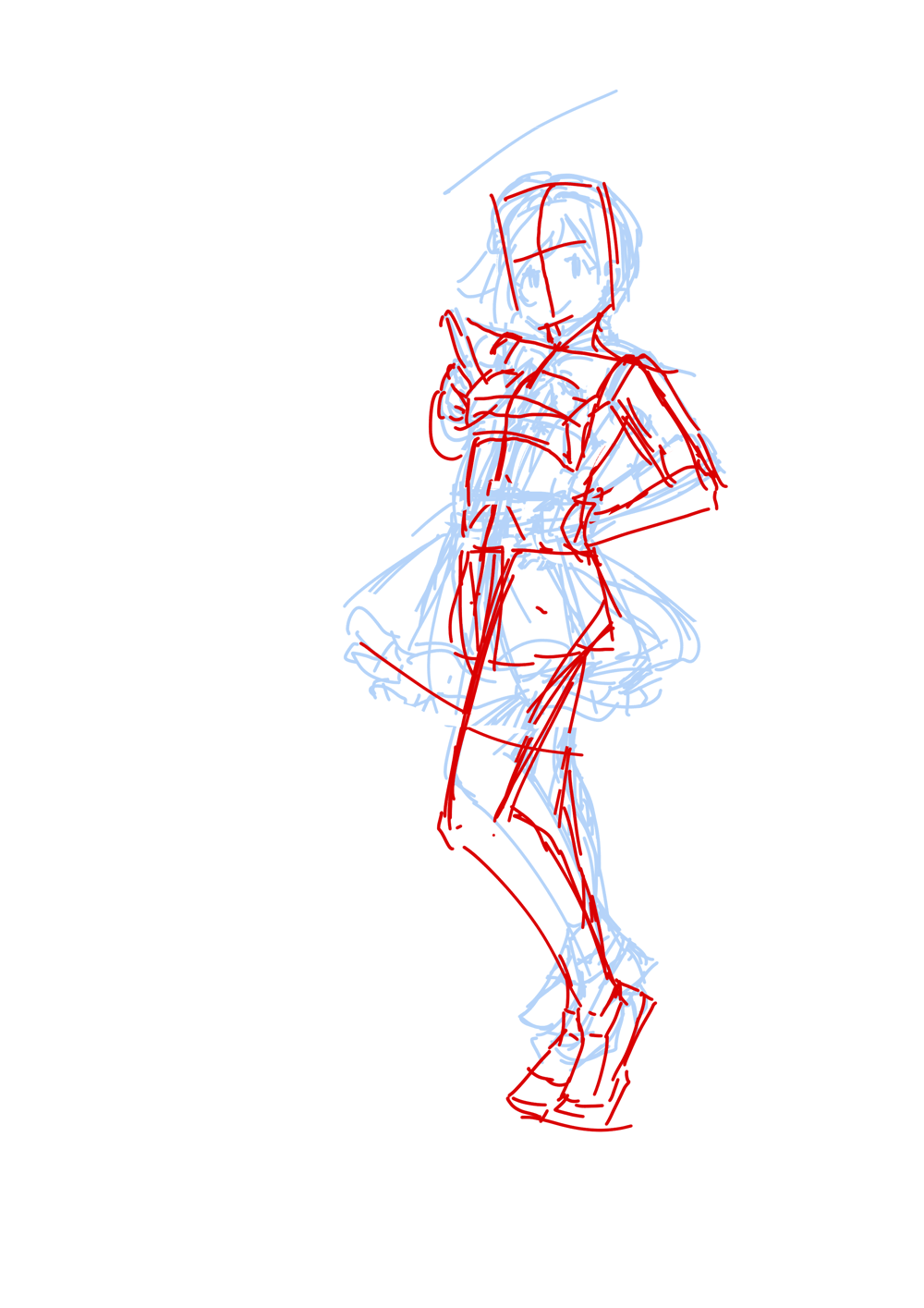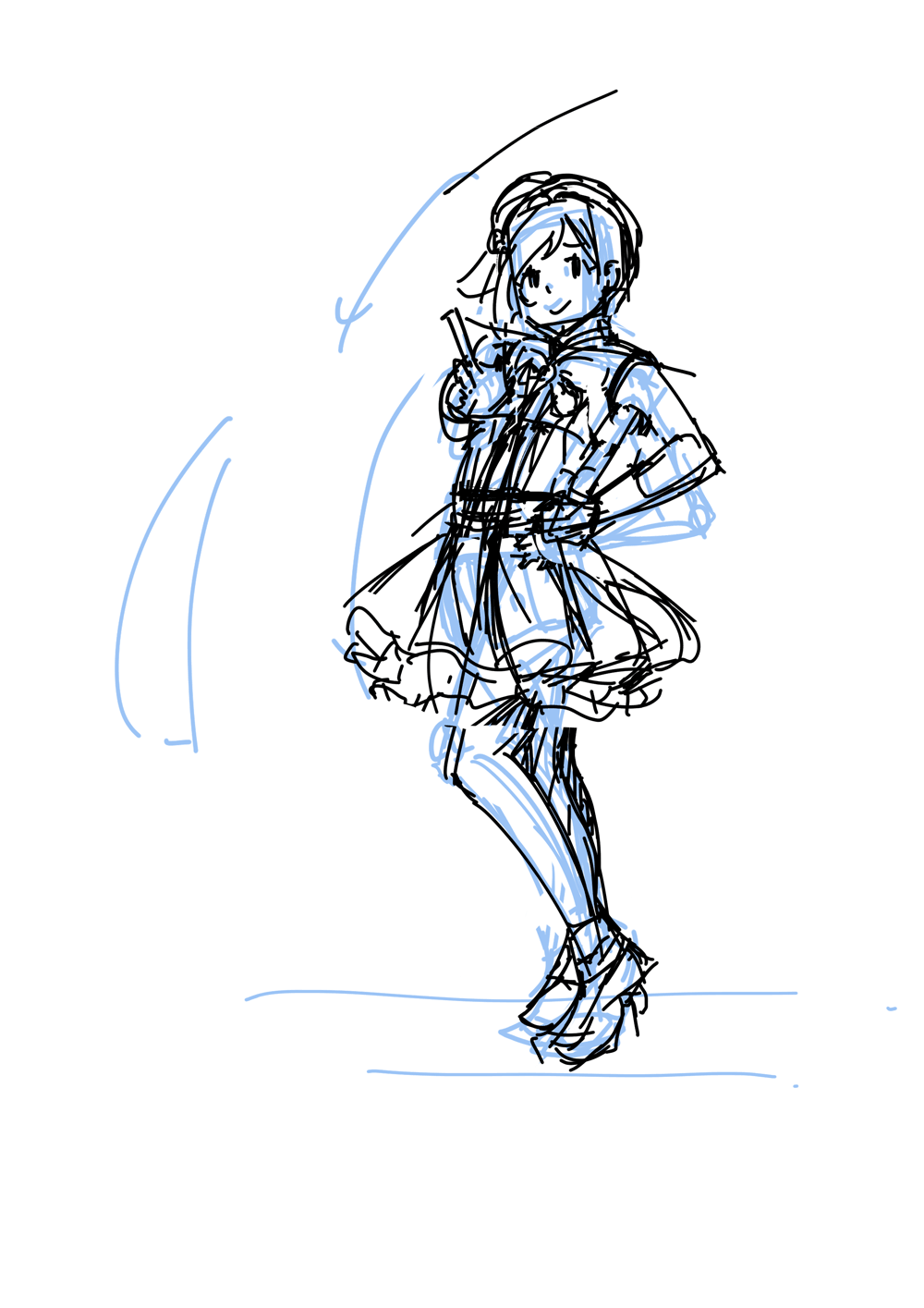 キャラを乗せると服でコントラポストが目立たなくなってしまうことが多いのでこの段階でポーズを誇張させたりします。