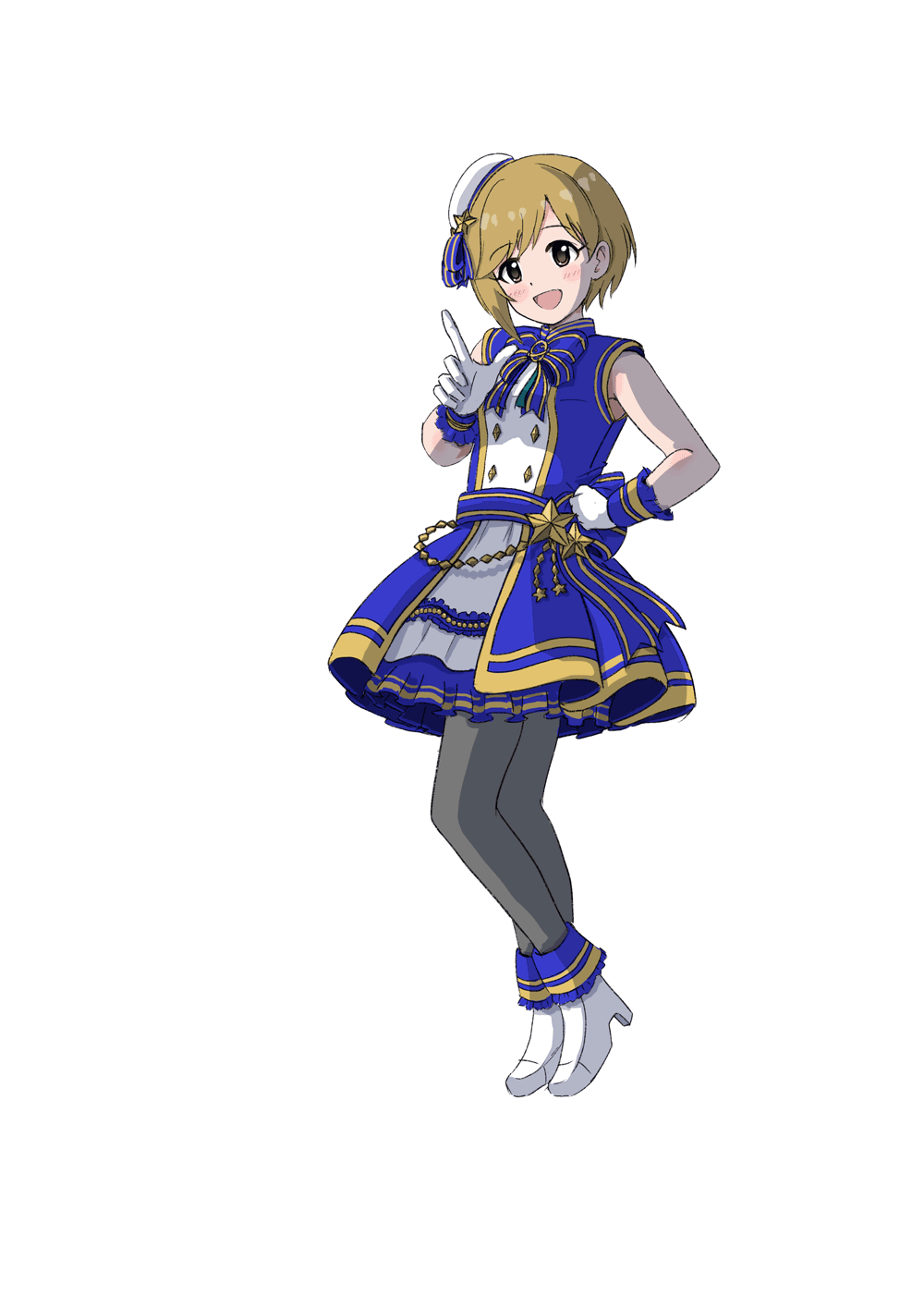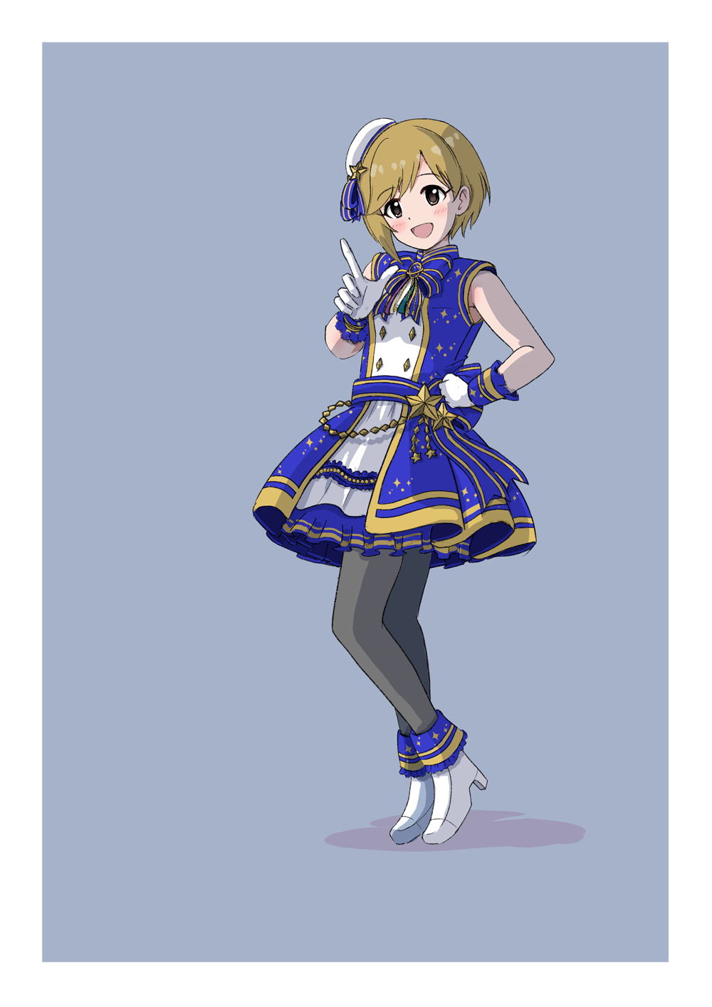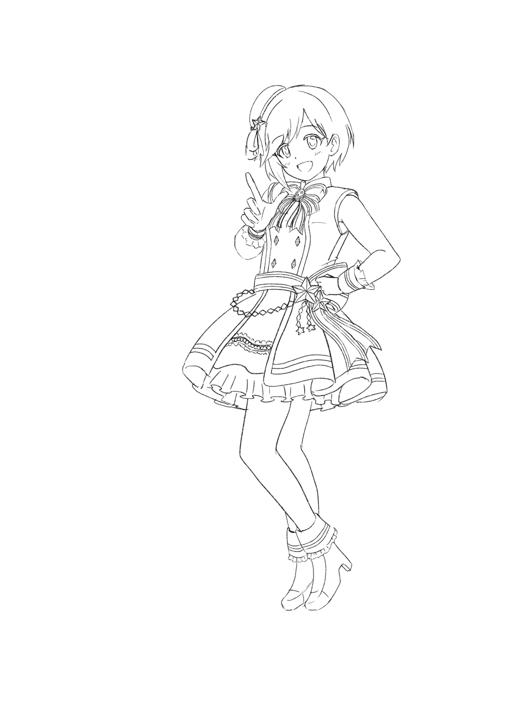 胸元のアクセサリの不足分と衣装の星マークを追加、背景にベタをつけました。