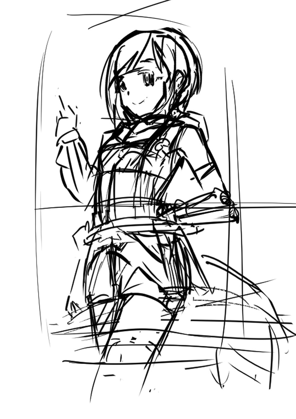 あおり構図なのでラッピングラインとオーバーラップを意識して描いています。