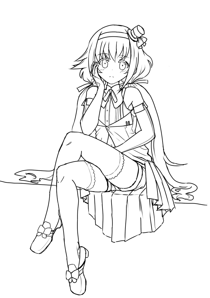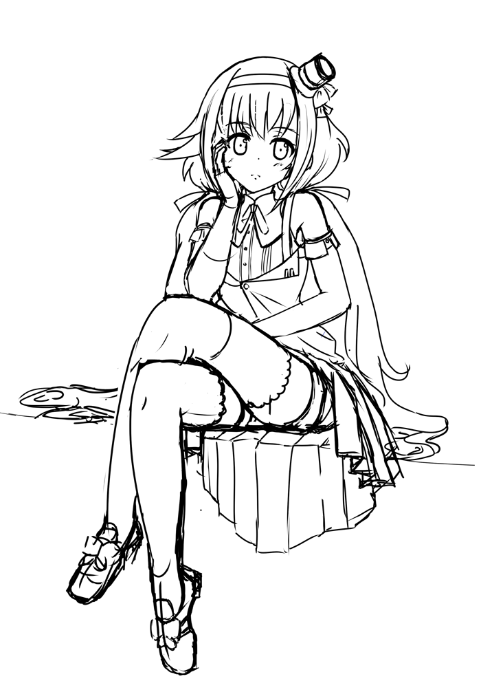 最初からピノ様を描くと決めていたので、ピノ様らしいポーズということで「座って足組み」のポーズにしました。
