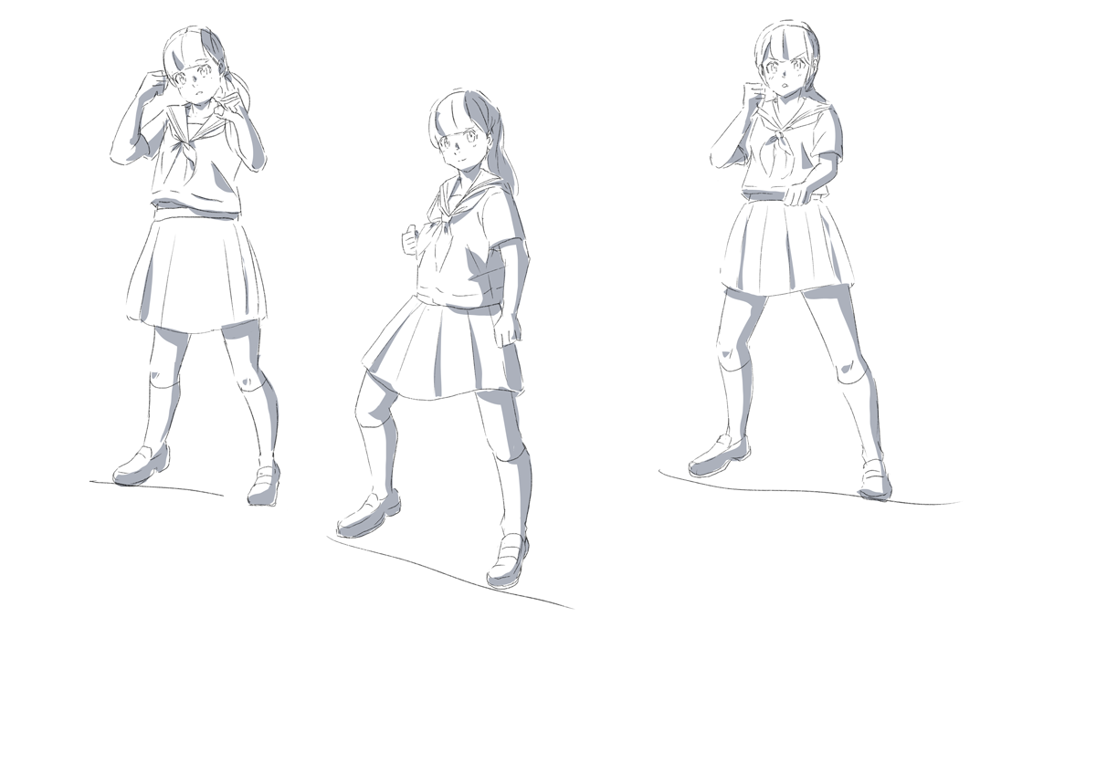 昨日に引き続き表情を意識。同じポーズでも「そのキャラならどうする」と考えると微妙にニュアンスの違うポーズになるなと。これが演技ということなのだろうか。