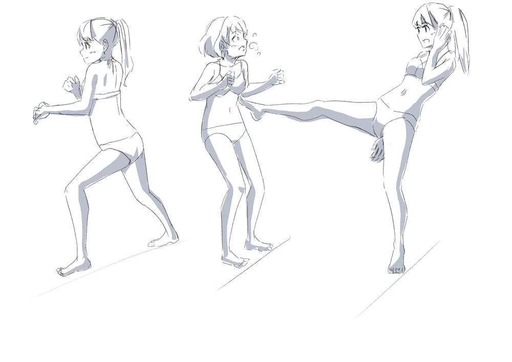 足の幅を誇張してみたけどこれだけでは演技というにはなんだか足りてない気もする。