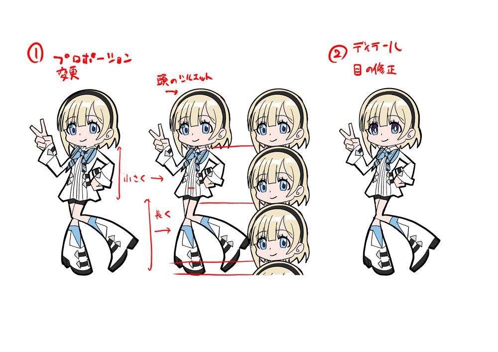 - 3頭身キャラにする(2頭身だとデレステのミニキャラにイメージが引っ張られるため。)