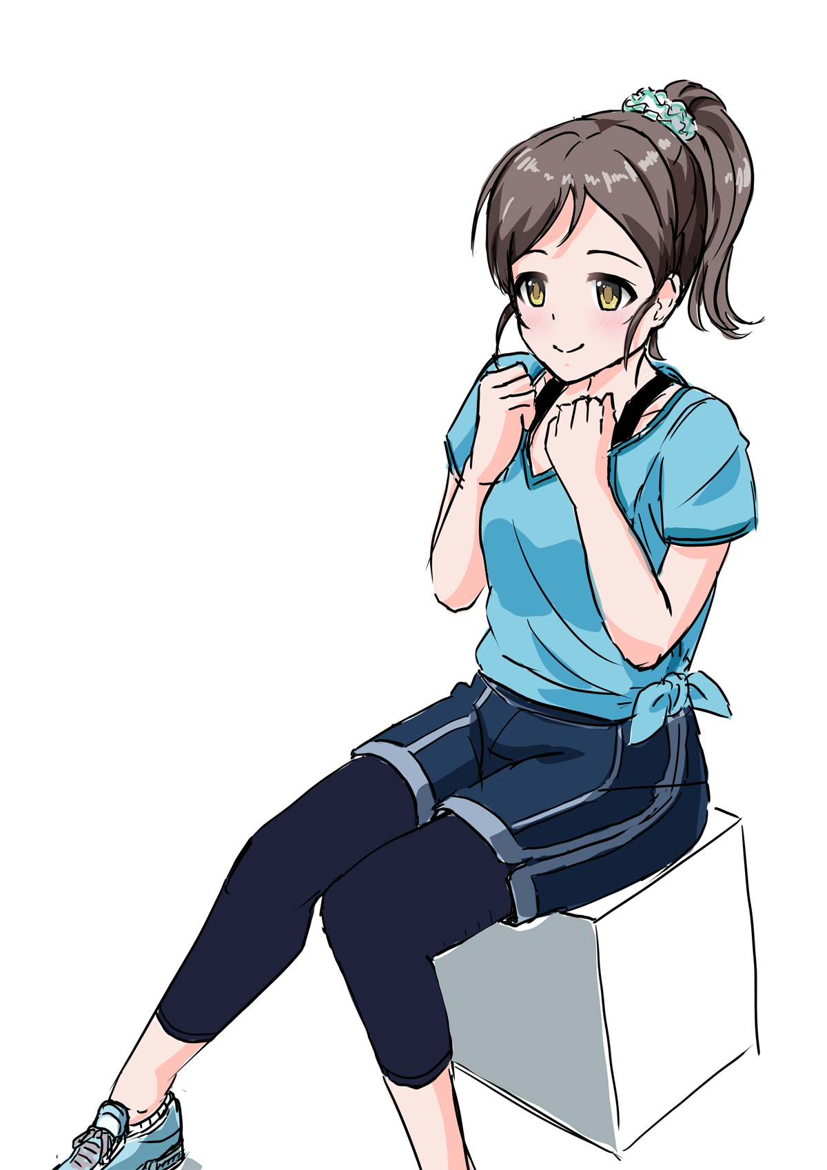 座りでやや俯瞰気味のポーズで藍子ちゃんを描いてみました。色々直したいところもたくさんあるけどあくまでワンドロチャレンジなのでこのくらいでいいことにします。