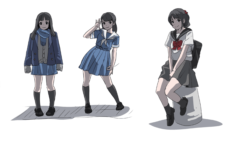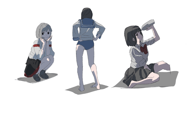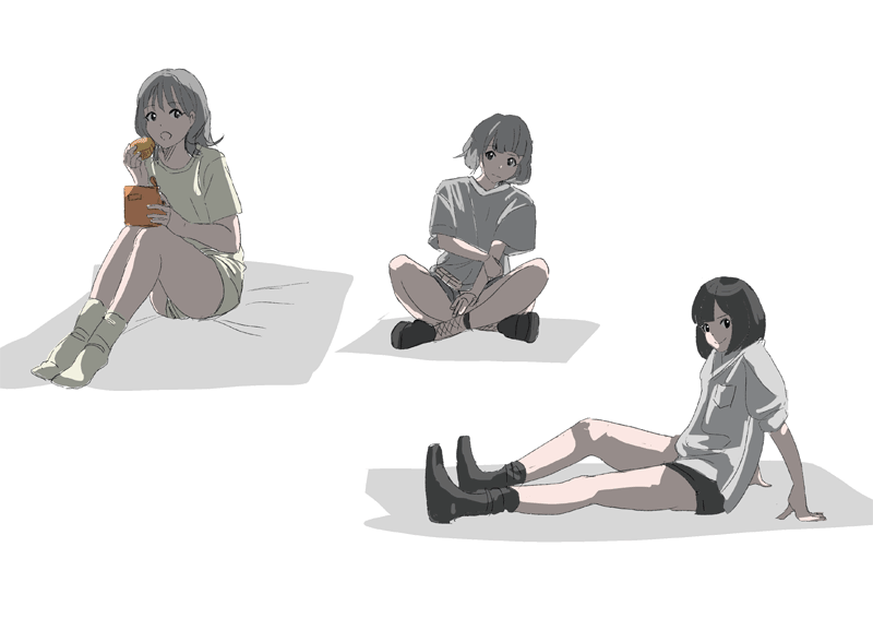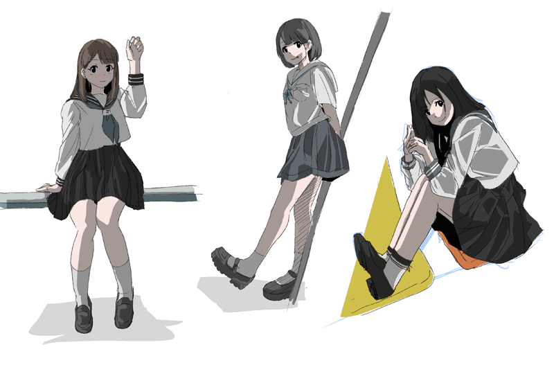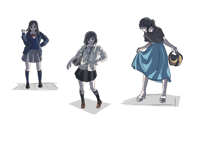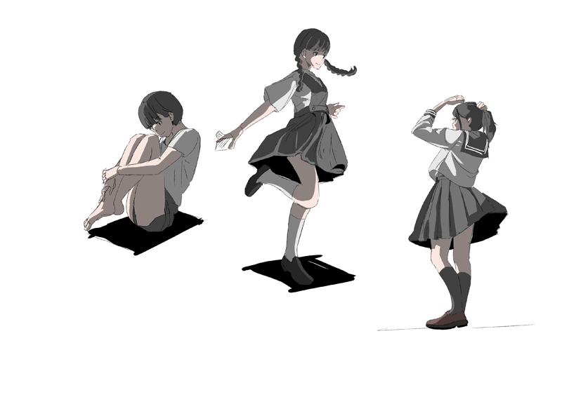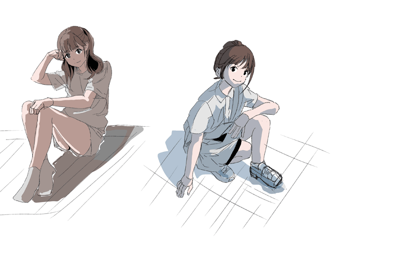 毎日練習vol1 練習 2023.09.07 簡単クロッキー練習 1 2 3 5 6 7 あおり構図。 水面の表現なども練習したい。 眠くて雑。 元写真を見ながら影つけ。 顔に影かけちゃうと魅力半減するかも 網タイツもうちょっと面に沿って描こう。 上の二人がよく描けた気がする。 茄子さん。手足おおきい。 影を追いながら描いたけどなんか違う。 全身を入れない練習。 真ん中俯瞰の絵だっけ。思ったより見下ろしてる。 ペン太め。 立ちポーズの2人が少し詰まってしまった顔の影残してるので少し暗め。 いつもより座りポーズが太って見える。側面がわかりづらいからかな。 前回より細くは見えるけど靴大きすぎるかも。 Gペンから鉛筆に戻したけら安定した気がする。やはり鉛筆。 写真を見てもまだ光と影の区別がわからない。 しわにあたる光を意識した。しわの頂点に光というより、しわに影がつくという印象。 椅子みたいに見えないけど、描かないより描いたほうが情報量増えていいなと思った。少しずつ小物や家具を入れていく練習。 前へ 次へ 表情の練習2表情の練習毎日練習vol19