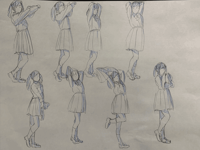 練習「イラストレーターが考えた女子高生ポーズ集」の簡単クロッキーをやっていきます。