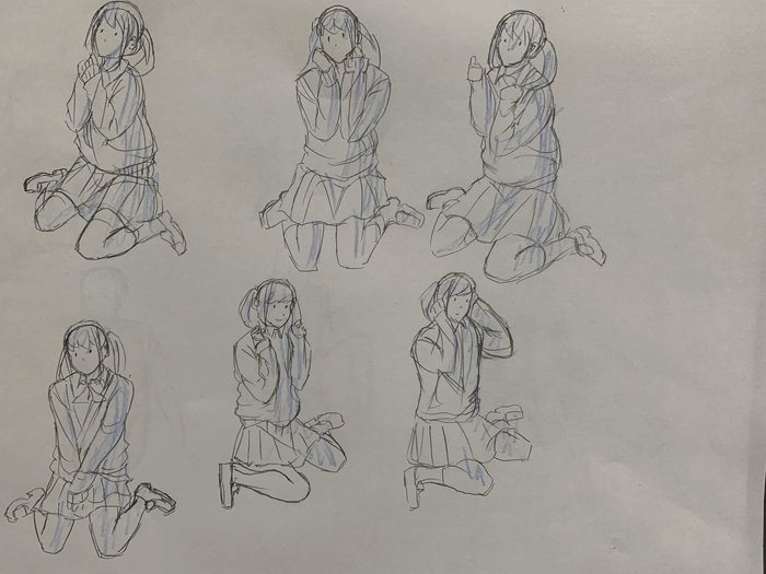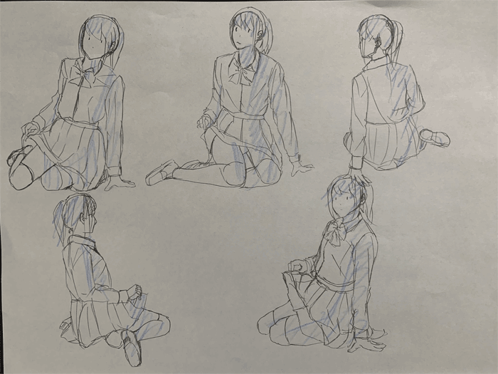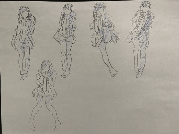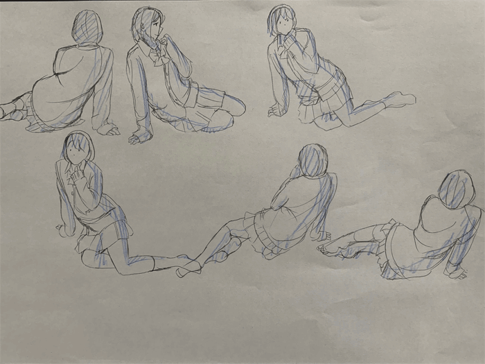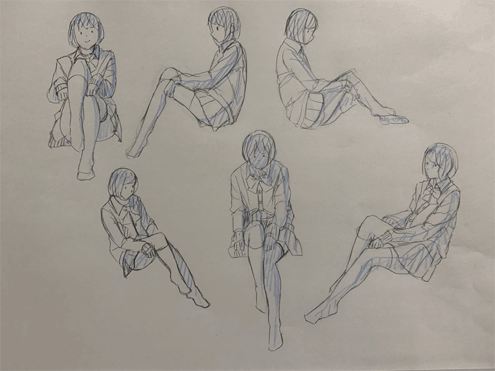 座りポーズの練習のためしばらく座りポーズを描いていきます