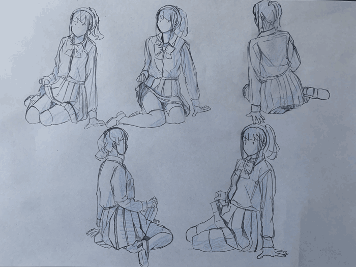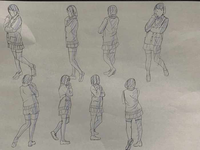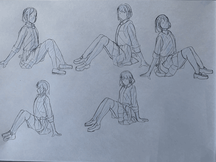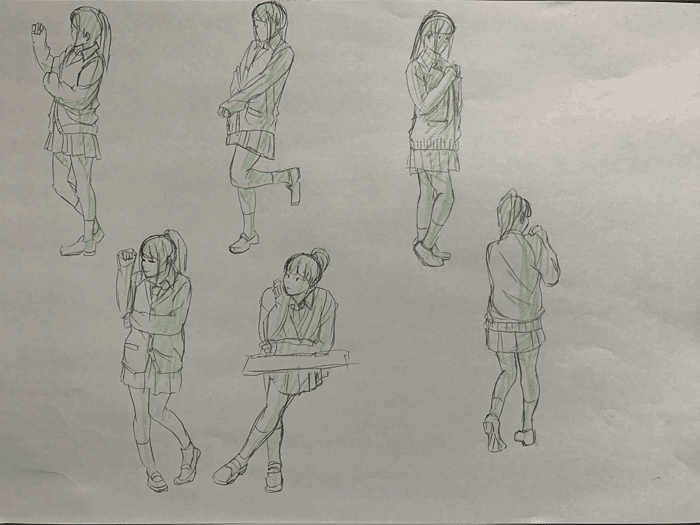 練習「イラストレーターが考えた女子高生ポーズ集」の簡単クロッキーをやっていきます。